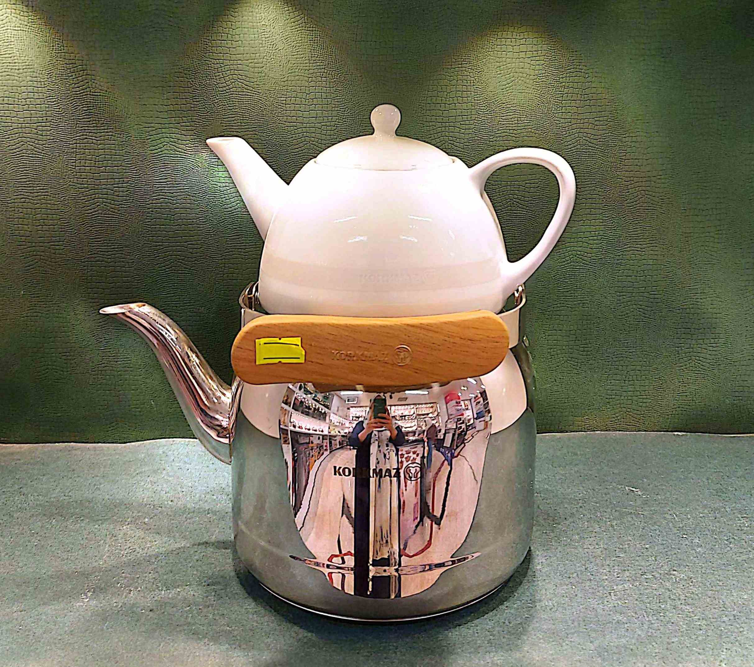 کتری و قوری کرکماز با دسته چوبی و قوری چینیناموجود