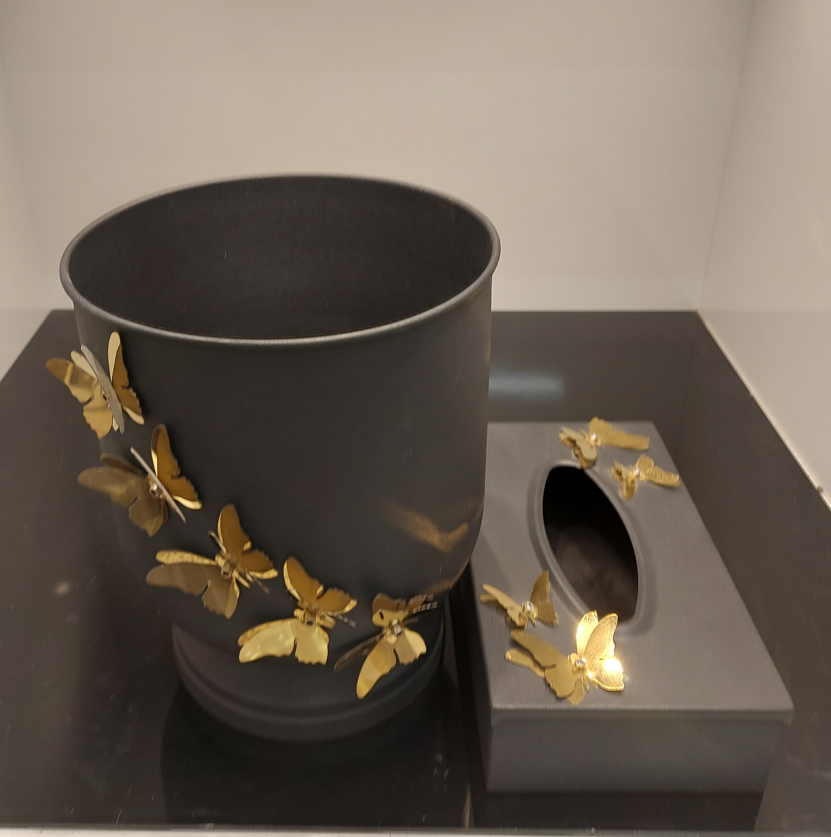 سطل و جای دستمال کاغذی فلزی مشکی مات.در دو طرح پروانه و گل۱٬۹۰۰٬۰۰۰ تومان