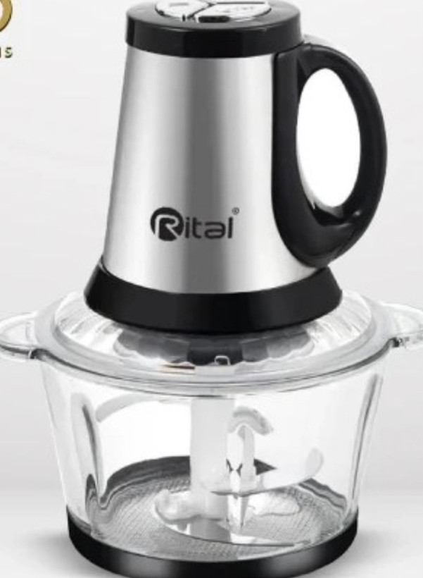 خرد کن ریتال با توان مصرفی ۱۰۰۰ وات و ظرفیت ۶ لیتر با دکمه فشاری و جنس کاسه شیشه و تیغه ۶ پره فولادی و جنس شفت موتور فلزی با قابلیت چرخ کردن گوشت و خرد کردن سیب زمینی.گوجه و سبزیجات