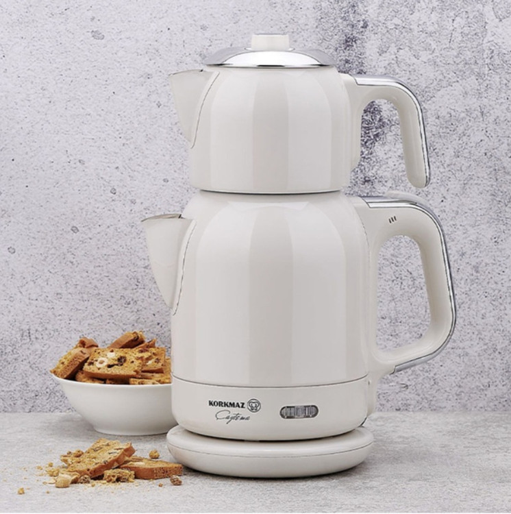 چای ساز روی هم کرکماز از جنس استیل با رنگ زیبای سفید .