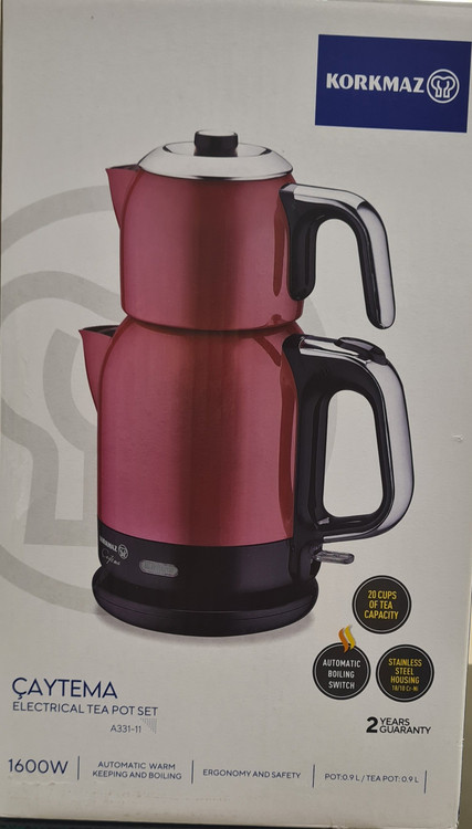 چای ساز روی هم کرکماز ساخت کشور ترکیه با توان مصرفی ۱۶۰۰ وات .دارای فیلتر تفاله گیر چای و قابلیت چرخش ۳۶۰ درجه نشانگرLEDدارد..طرفیت کتری ۱/۷و ظرفیت قوری ۰/۹میباشد
