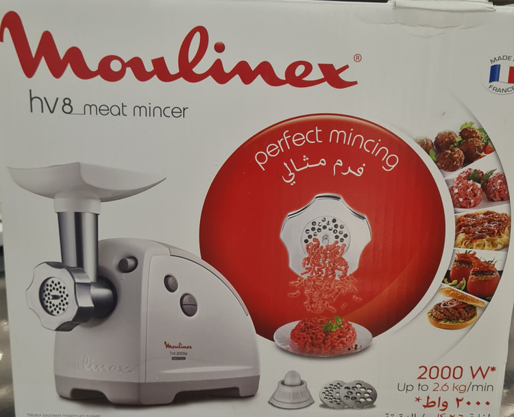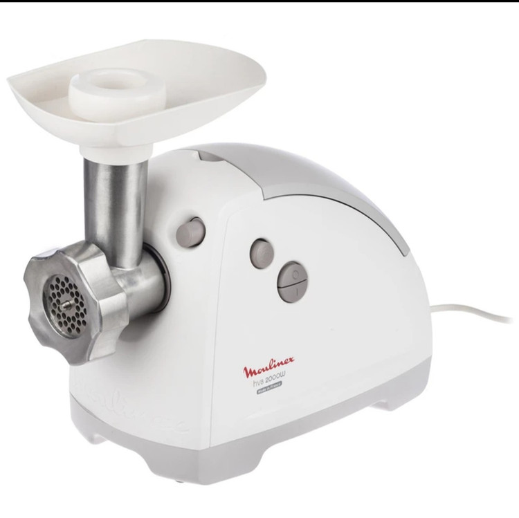 چرخ گوشت مولینکس با تیغه استیل و سینی پلاستیکی دارای دو شبکه فلزی ریز و درشت و امکانات اماده سازی سوسیس ساز .توان ۲۰۰۰ وات..طول سیم برق ۸۰ سانتی متر.سوسیس ساز دارد
