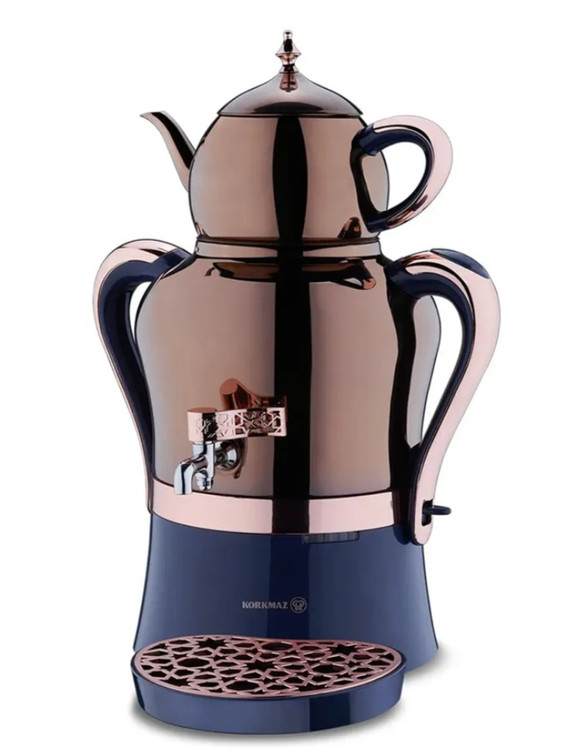 سماور برقی A843-02 با توان مصرفی ۲۰۰۰ وات و بدنه استیل ضد زنگ۱۸/۱۰ و گنجایش ۳/۵لیتر و قوری ۱/۱لیتر با سیستم ایمنی خاموشی خودکار و قابلیت جوش آوردن خودکار .