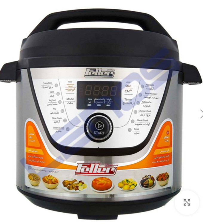 زودپز برقی فلر دارای توان مصرفی ۱۰۰۰وات .دارای صفحه نمایشگر دیجیتال و ظرف آلومینیوم با روکش نچسب تفلون