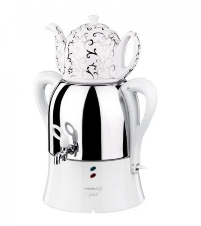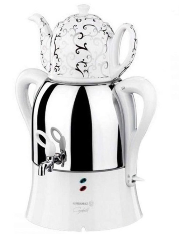 سماور کرکماز ساخت ترکیه با ظرفیت ۳ لیتری سماور و ۱/۲لیتر قوری دارای بدنه استیل ضد زنگ .دستگیره از جنس مقاوم در برابر حرارت با طراحی ارگونومیک و سیستم صرفه جویی در انرژی .قابلیت گرم نگه داشتن آب و چای و جوش آوردن اتوماتیک .دارای لامپ نئون نشانگر