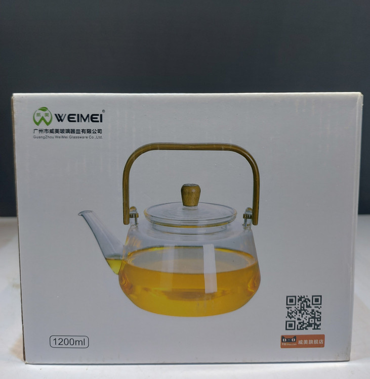 قوری زیبا ی پیرکس که دسته ی چوبی دارد.شعله مستقیم است و دارای صافی پیرکس میباشد .حجم ۱۲۰۰ میلی لیتر