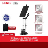 بخا گر تفال ۱۵۱۰با توان مصرفی ۲۹۸۰ وات با حجم خروجی بخار انفجاری تا ۹۰ گرم در دقیقه از بین برنده میکروب ها و باکتریها از البسه برای بخار دهی لباس های مجلسی .کت و شلوار .لباس های کار شده.پرده بکار میرود.زمان آماده بکار دستگاه ۷۰ ثانیه.قابلیت بخاردهی و اتو کشی البسه.سری بخارگر بسیار سبک با وزن ۵۳۰ گرم.مخزن آب گنجایش ۱ لیتر دارد .طول سیم ۳ متر است .سیستم خاموشی خودکار .سیستم فناوری پیشرفته با برد هوشمند .سیستم تنظیم درجه حرارت هوشمند بدون تنظیم دما.دارای چرخ جهت جابجایی آسان.مخزن آب جدا شونده.دارای قطعه مخصوص اکسسوری جهت جدا سازی مو و پرز از سطح البسه و ارتفاع قرارگیری البسه قابل تنظیم است.طراحی در فرانسه و ساخت در چین
