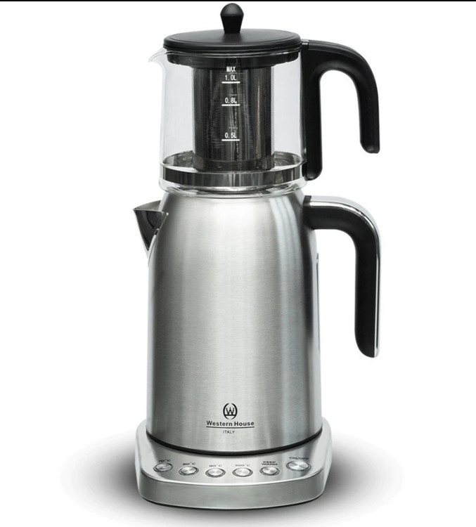 چای ساز وسترن هاوس مدل ۱۳۴۰ با توان مصرفی ۲۲۰۰ وات و قدرت بالای به جوش آوردن آب و دم کردن چای با سرعت بالا در زمان کم میشود. پنل کنترل دکمه ای برای کنترل دستگاه موجود است.امکان تنظیم دما از ۷۰ تا ۱۰۰ میباشد .جنس بدنه کتری از استیل و جنس قوری از شیشه میباشد .سیستم خاموشی خودکار دارد .