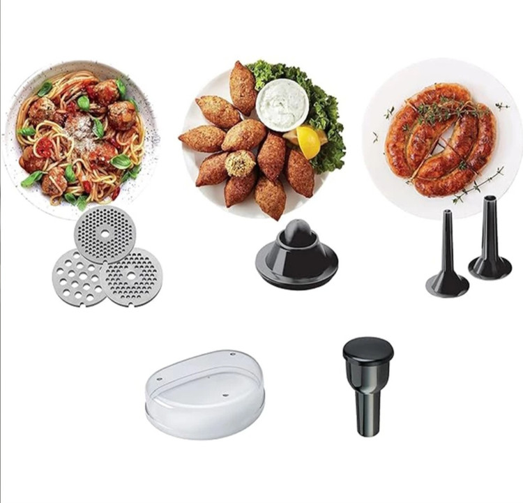 چرخ گوشت کن وود مدل ۵۱۰ با بدنه مقاوم توان مکانیکی ۱۶۰۰ وات را دارد .۳ پنجره برای چرخ کردن گوشت دارد.گلویی فلزی از جنس آلیاژ پرداخت شده همراه با گوشتکوب دو قطعه سوسیس ساز و کبه ساز و سینی دو منظوره دارد.