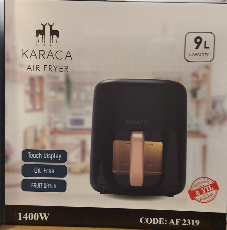 هواپز و سرخ کن بدون روغن کاراجا با ۹ لیتر ظرفیت مناسب برای پخت کیک و پیتزا و سایر غذاهای کبابی دارای سبدی است که غذا در آن قرار میگیرد.سرخ کن کاراجا با طراحی زیبا و مدرن وسیله ای مناسب برای پخت و کباب کردن انواع غدا میباشد