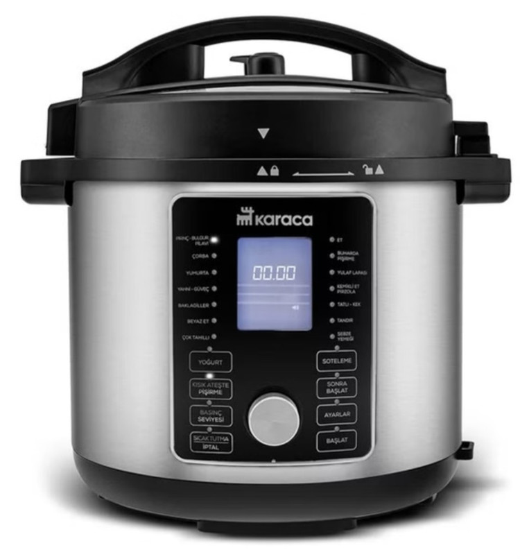زودپز برقی 6 لیتری کاراجادارای بدنه استیل ضد خش با طراحی زیبا و پنل لمسی دیجیتال با بیشتر از 10 برنامه پخت و پز و دارای سیستم گرم نگهدارنده و سوپاپ بخار و ایمنی بالا همراه با سبد بخار پز و ارام پز