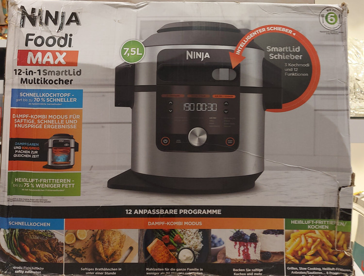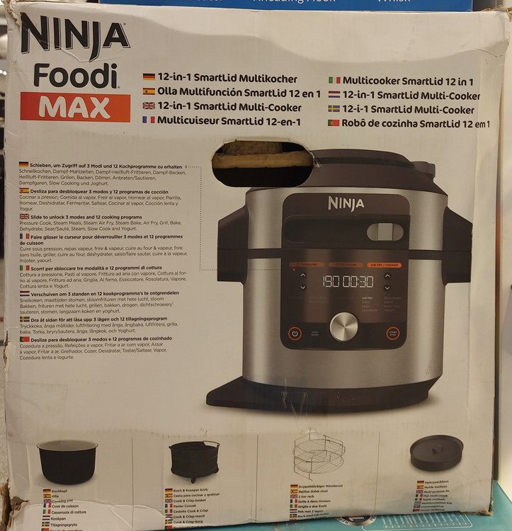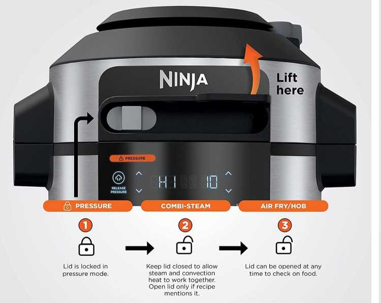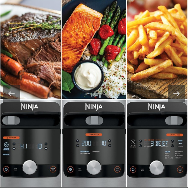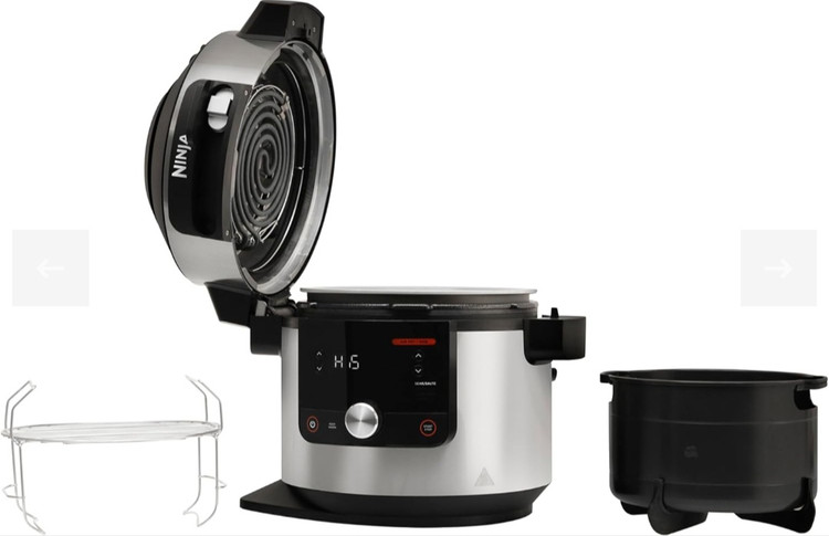 زودپز برقی نینجا که گنجایش ۷/۵لیتر دارد .این زودپز رنگ سیلور و توان ۱۷۶۰ وات دارد.ظرفیت سبد پخت و پز ۴/۷لیتر .قابلیت گرم نگهدارنده دارد .در کمتر از ۳۰ دقیقه غذا آماده میشود.دارای ۱۴ برنامه پخت از قبیل زودپز.بخارپز.آرام پز .ماست ساز .سرخ کن .گریل .پختن و خشک کردن .تفت دادن.