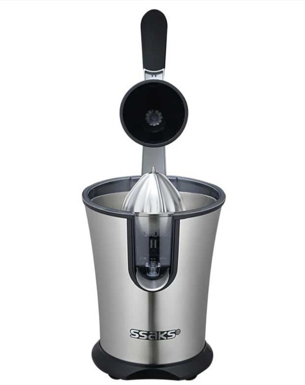 آب مرکبات گیری ساکس مدل cj2020 با موتور پر قدرت ۲۰۰ وات قابلیت آبگیری لیمو.پرتقال.انار.گریپ فروت را دارد.قسمت سری مرکبات گیر از جنس استیل و طراحی جدید که براحتی میتواند از لیمو ریز تا مرکبات درشت و انار را آبگیری کند.صافی از جنس استیل با مخزن جمع آوری ابمیوه با گنجایش ۲ لیوان.با قابلیت کنترل خروجی آبمیوه با قفل و باز کردن دهانه خروجی آب میوه دارای اهرم فشاری از جنس آلومینیوم بسیار مقاوم که براحتی میتواند آبگیری میوه را انجام دهد.تمام قسمت ها قابل شستشو میباشد .