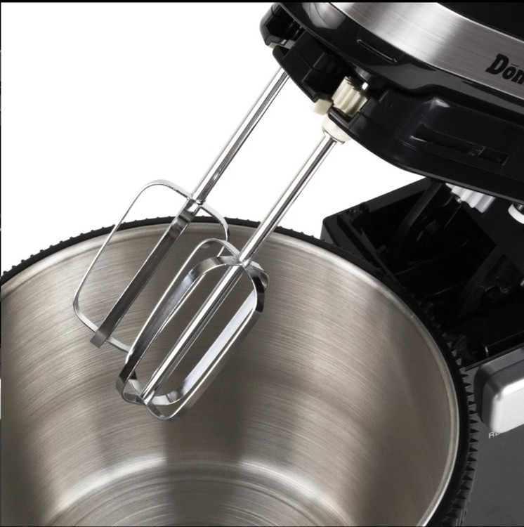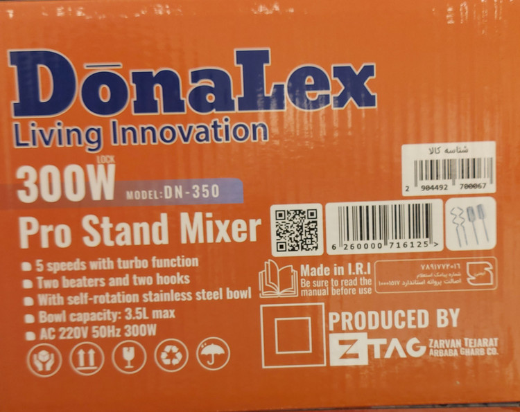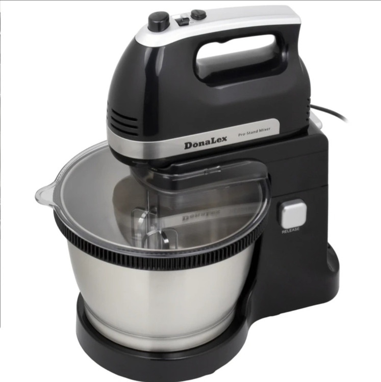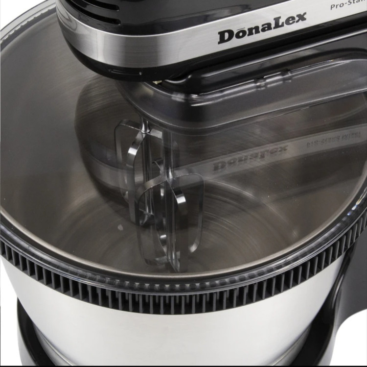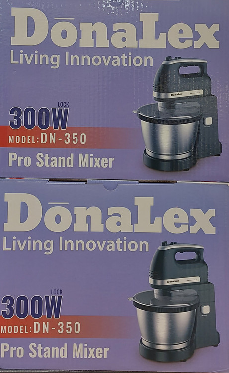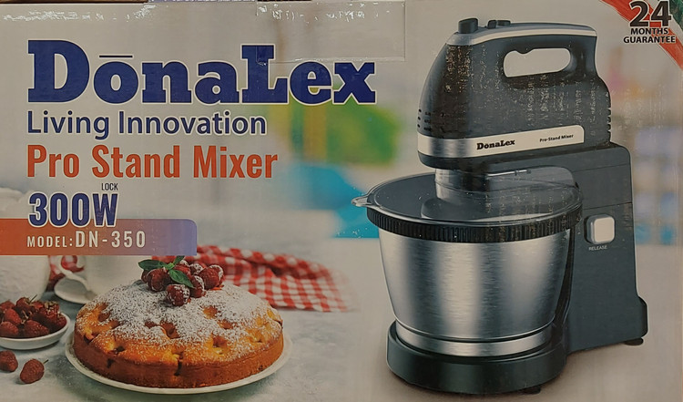 همزن دونالکس مدل DN-350 از سری همزن های پایه دار است.بدنه ی همزن از جنس پلاستیک و کاسه از جنس استیل ضد زنگ است.کاسه با حجم ۳/۵لیتر و قابلیت چرخش خودکار دارد .موتور همزن ۳۰۰ وات و ۵ تنظیم سرعت و همچنین عملکرد توربو دارد.
