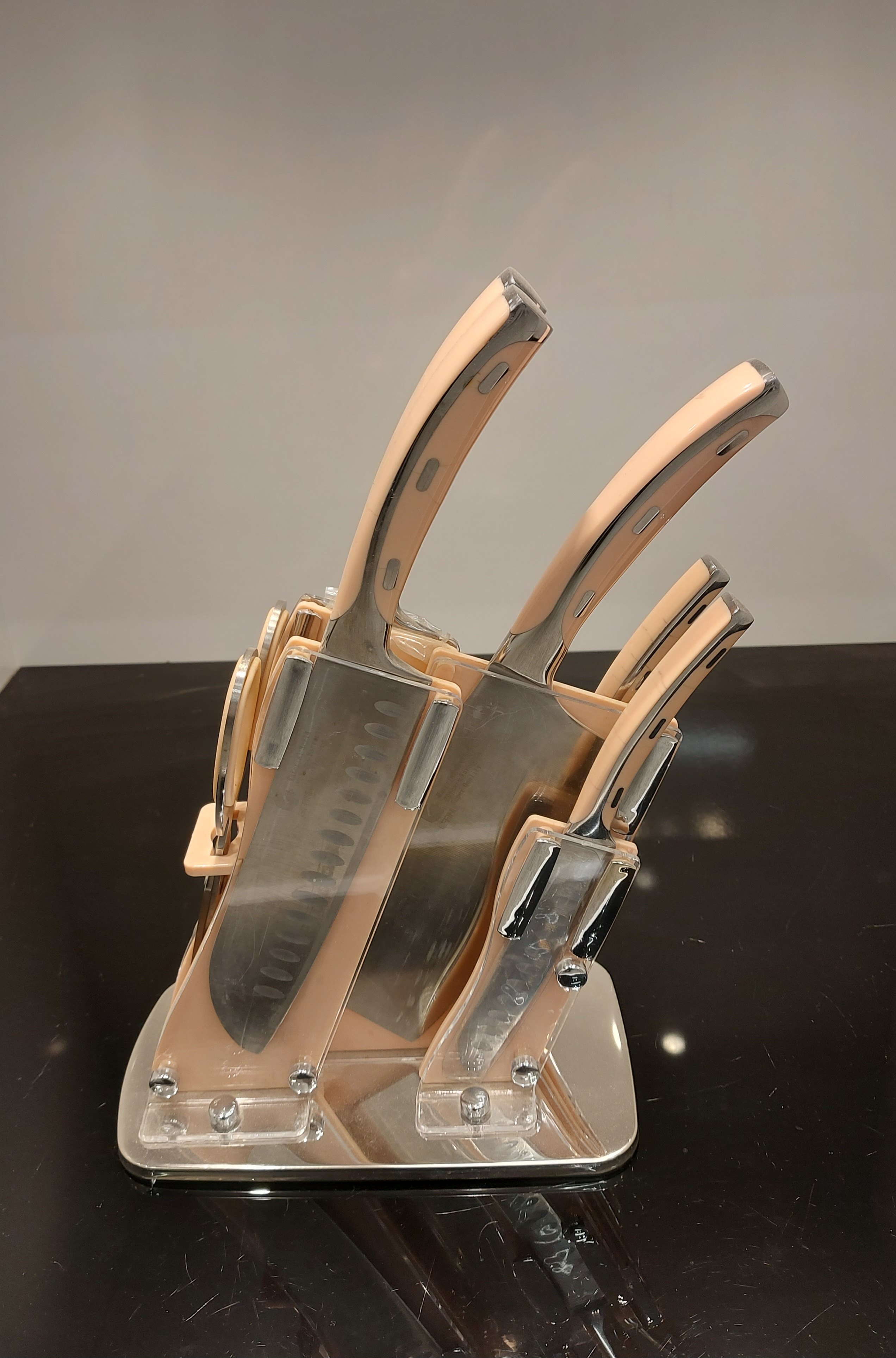 سرویس کارد و ساطور جی فی نی از استیل درجه ی یک در آشپزخانه بسیار کاربردی هستند.شامل کارد دم دستی .کارد مخصوص آشپزخانه.کارد گوشت و کارد متوسط میباشد.