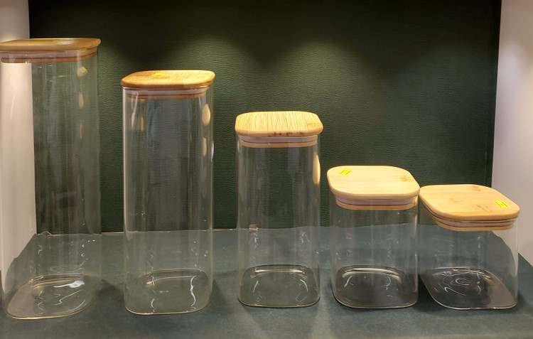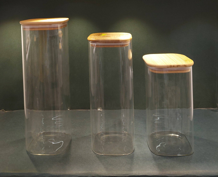 بانکه های پیرکس با درب واشر دار بامبو بسیار شیک و زیبا برای نگهداری انواع مواد غذایی و حبوبات و بنشن.تهیه شده از مواد درجه ی یک .وارداتی .در ۵ سایز