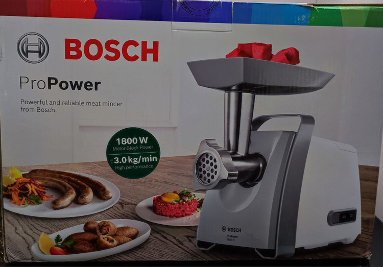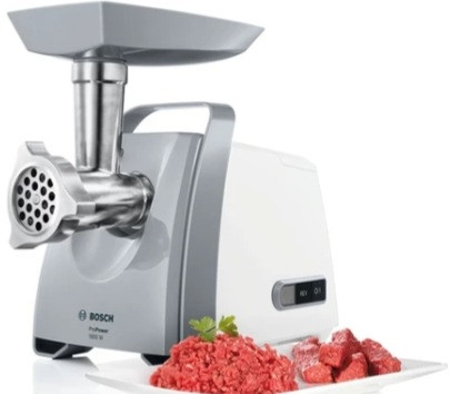 چرخ گوشت بوش مدل mfw66020.تیغه از جنس فولاد .تیغه ی تهیه ی سوسیس دارد سینی قرار گیری مواد غذایی پلاستیکی است .عملکرد چرخش معکوس دارد .توان دستگاه ۱۸۰۰ وات