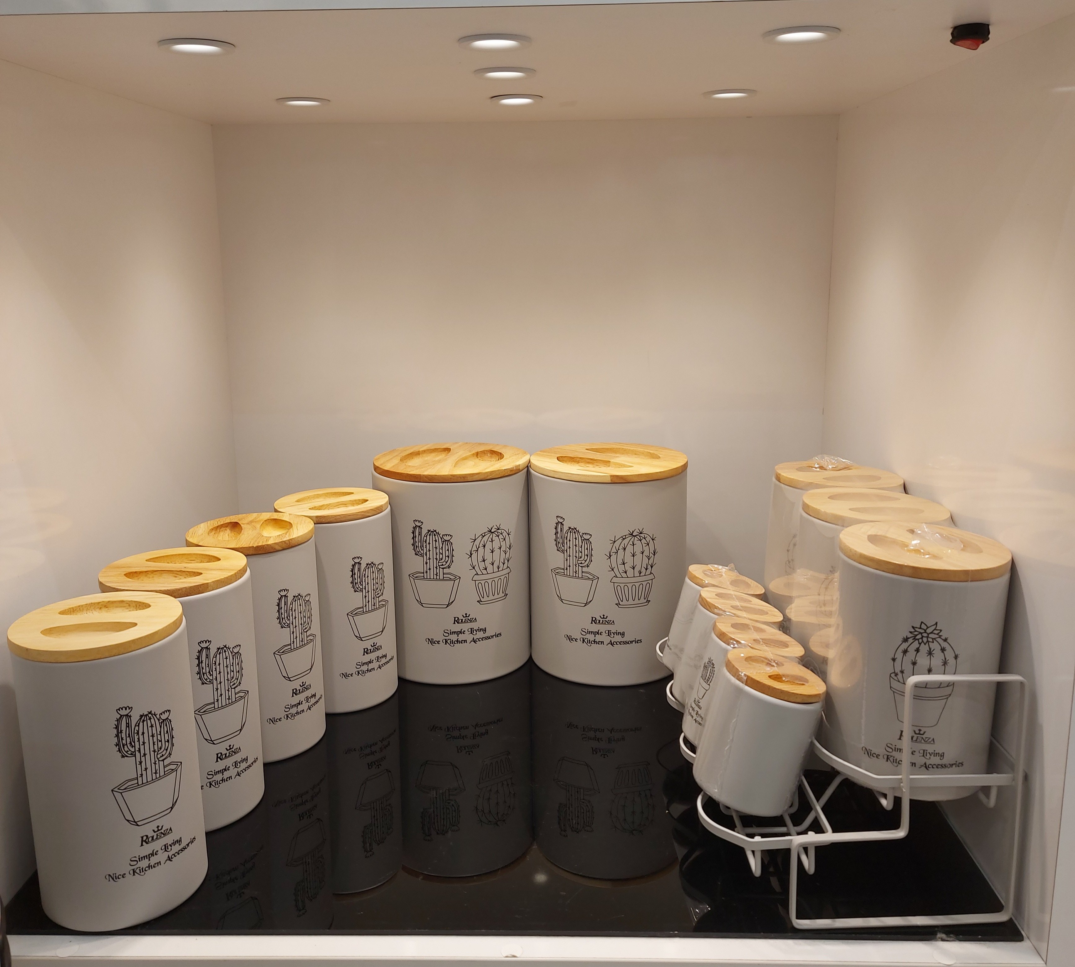 سرویس آشپزخانه ۱۶ پارچه طرح کاکتوس در رنگ های سفید و طوسی