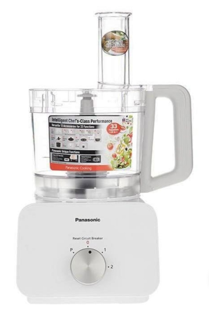غذا ساز پاناسونیک با قدرت موتور ۱۰۰۰ وات و تنظیمات ۲ سرعته و پالس با ۳۳ عملکرد مختلف میباشد .ظرفیت کاسه غذا ساز ۲/۵لیتر است.