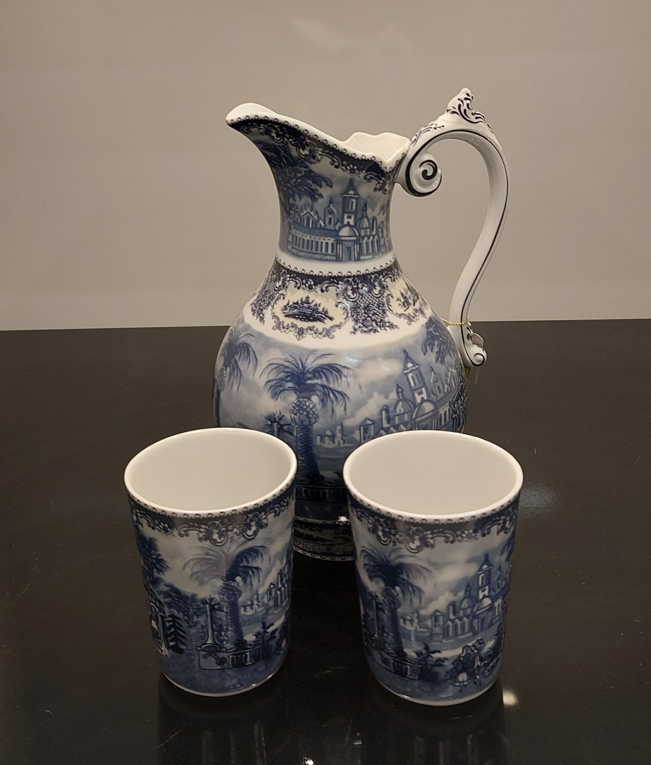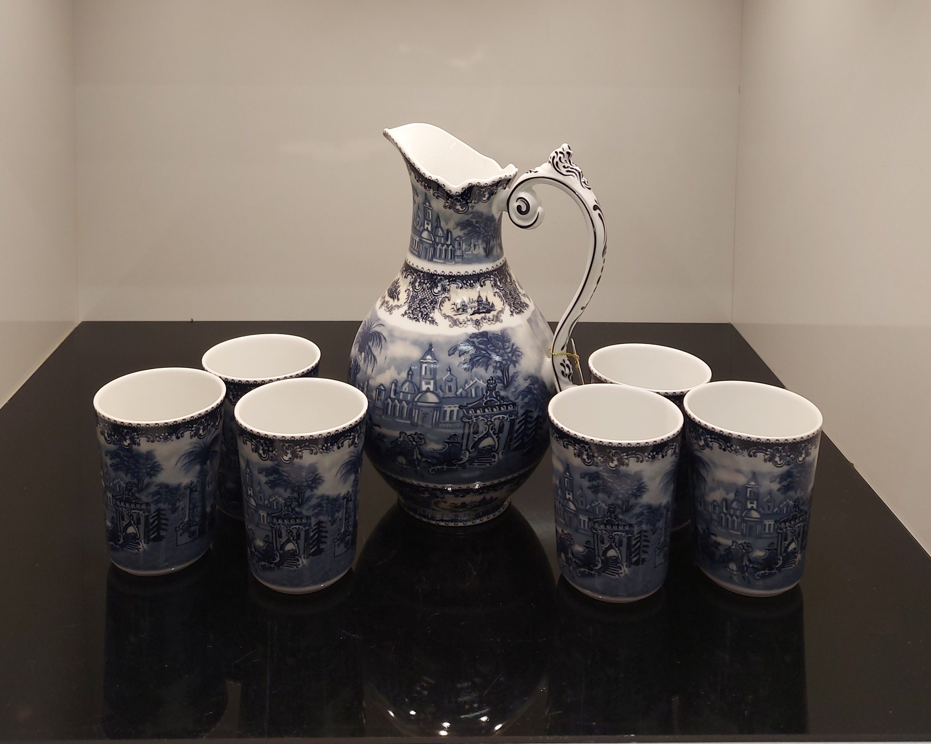 ست ۷ پارچه پارچ و لیوان مارگاریتا آکسفورد آبی