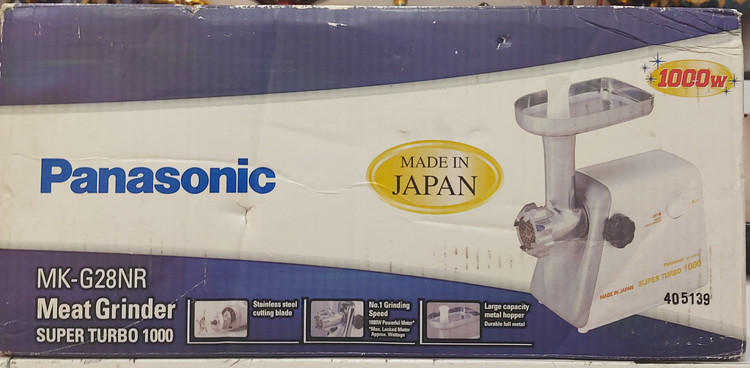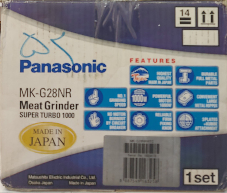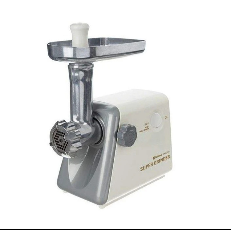 چرخ گوشت پاناسونیک مدل MK.G28NR با ۳ عدد صفحه پنجره ای .کبه ساز .قطعه گلویی و مارپیچ تیغه استیل و دسته فشاری.