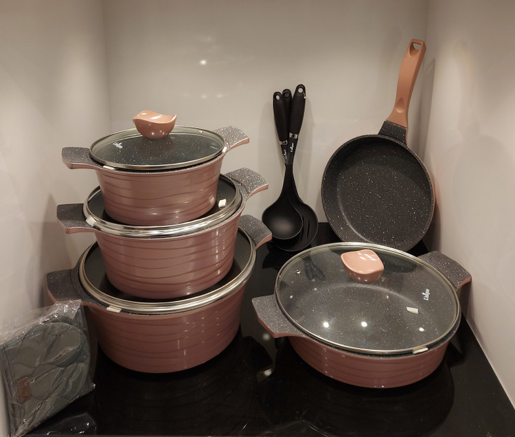 قابلمه گرانیتی با رنگ رزگلد: ۱۲ پارچه