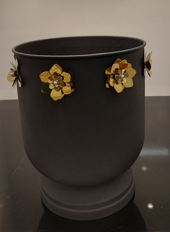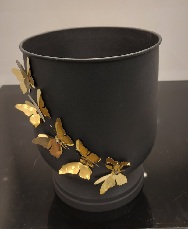 سطل فلزی مشکی مات با رنگ ثابت در دو طرح پروانه و گل طلایی