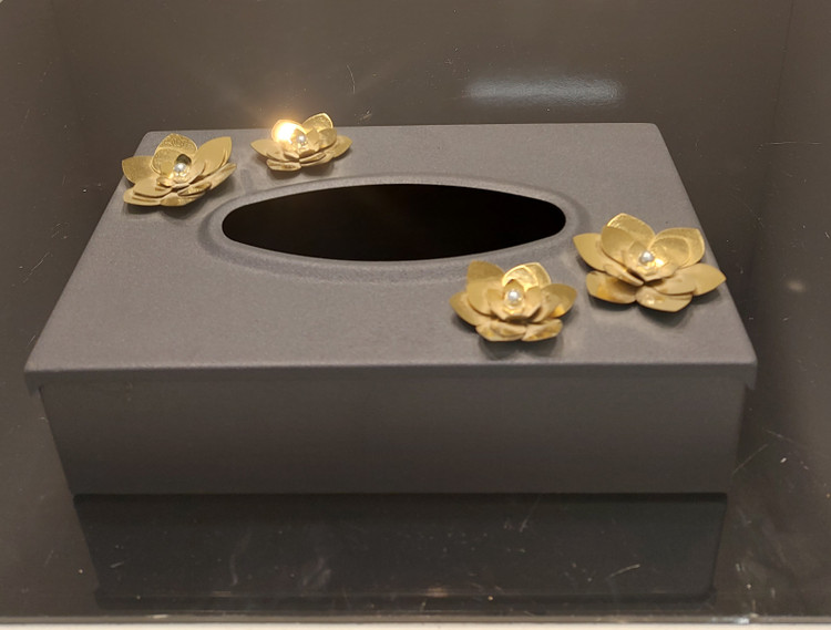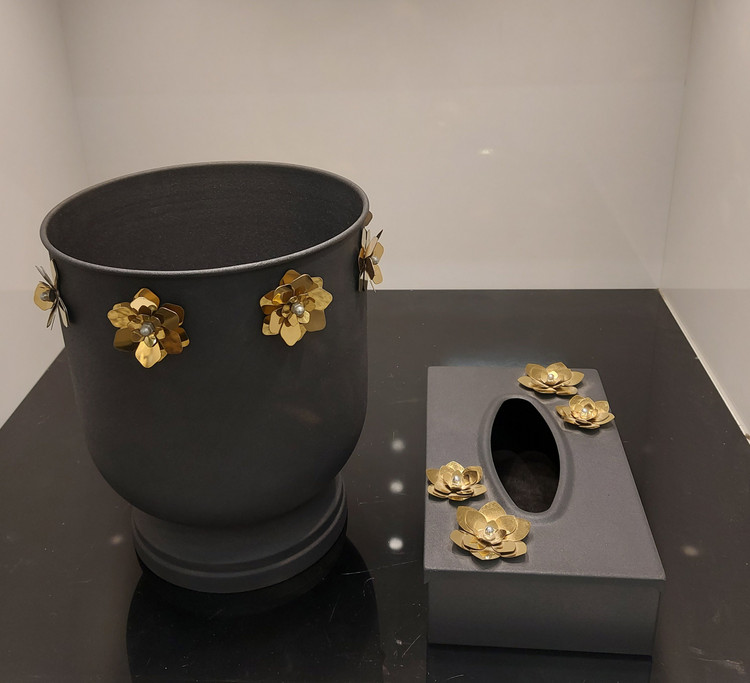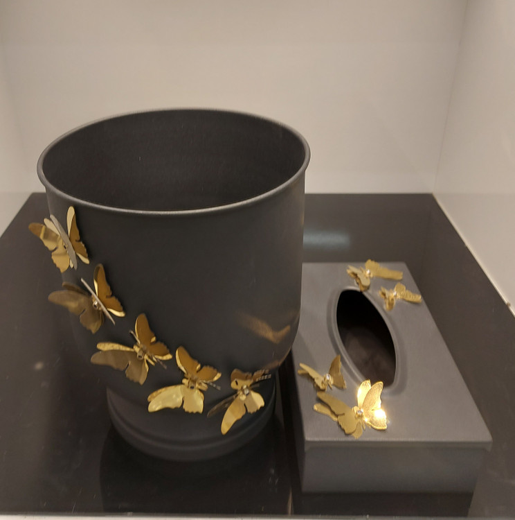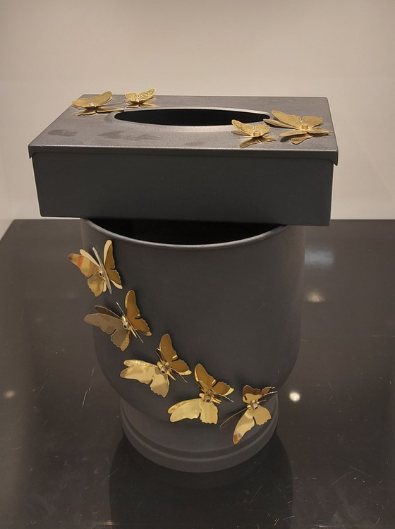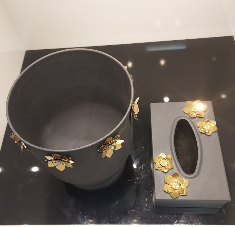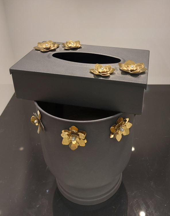 سطل و جای دستمال کاغذی فلزی مشکی مات.در دو طرح پروانه و گل