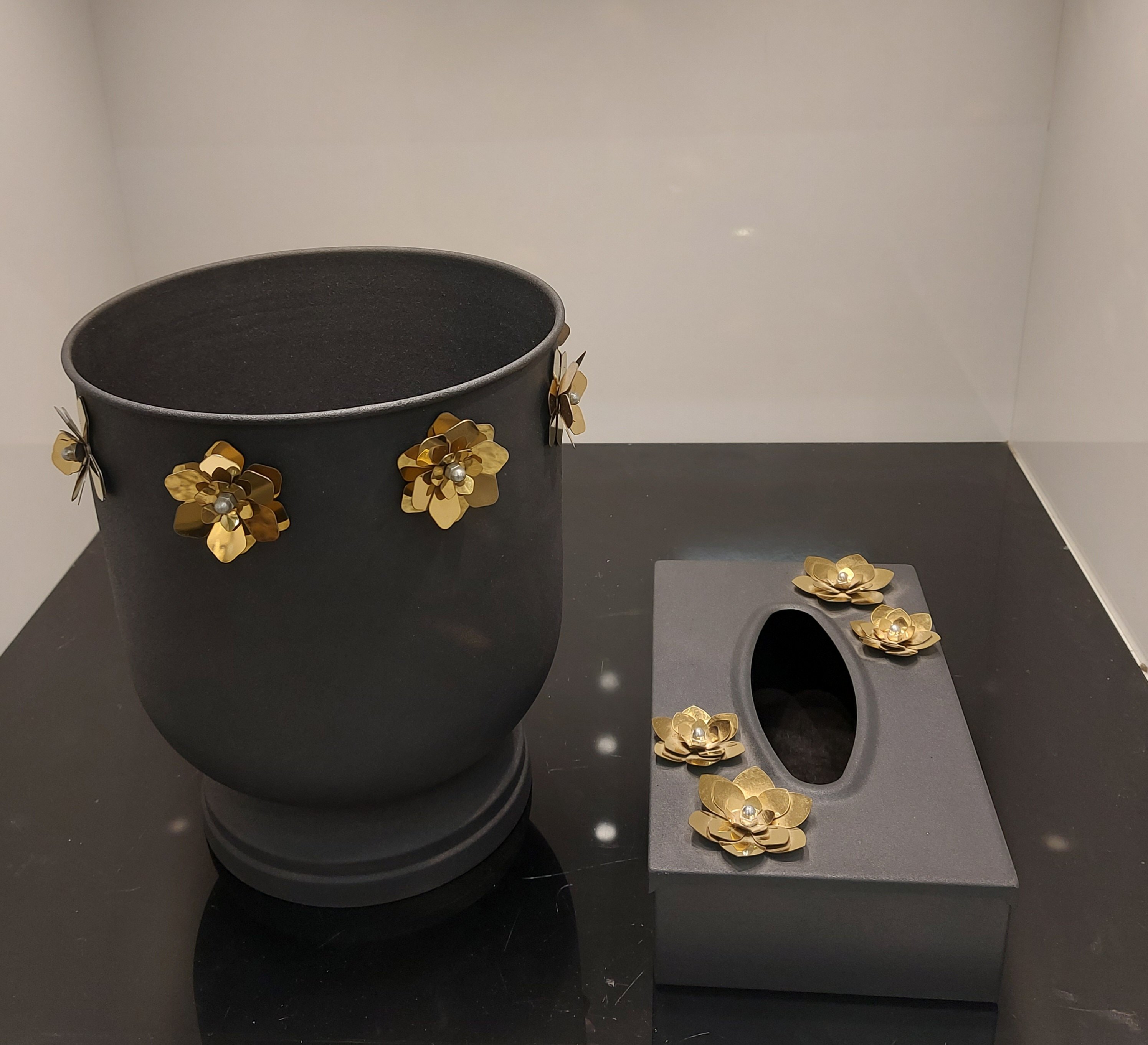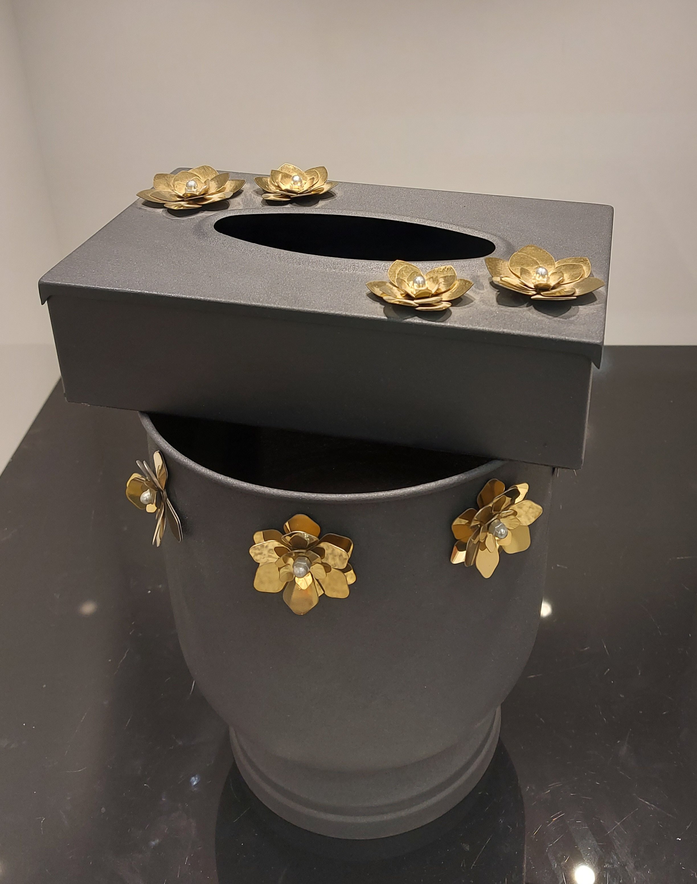 سطل فلزی مشکی مات با رنگ ثابت در دو طرح پروانه و گل طلایی