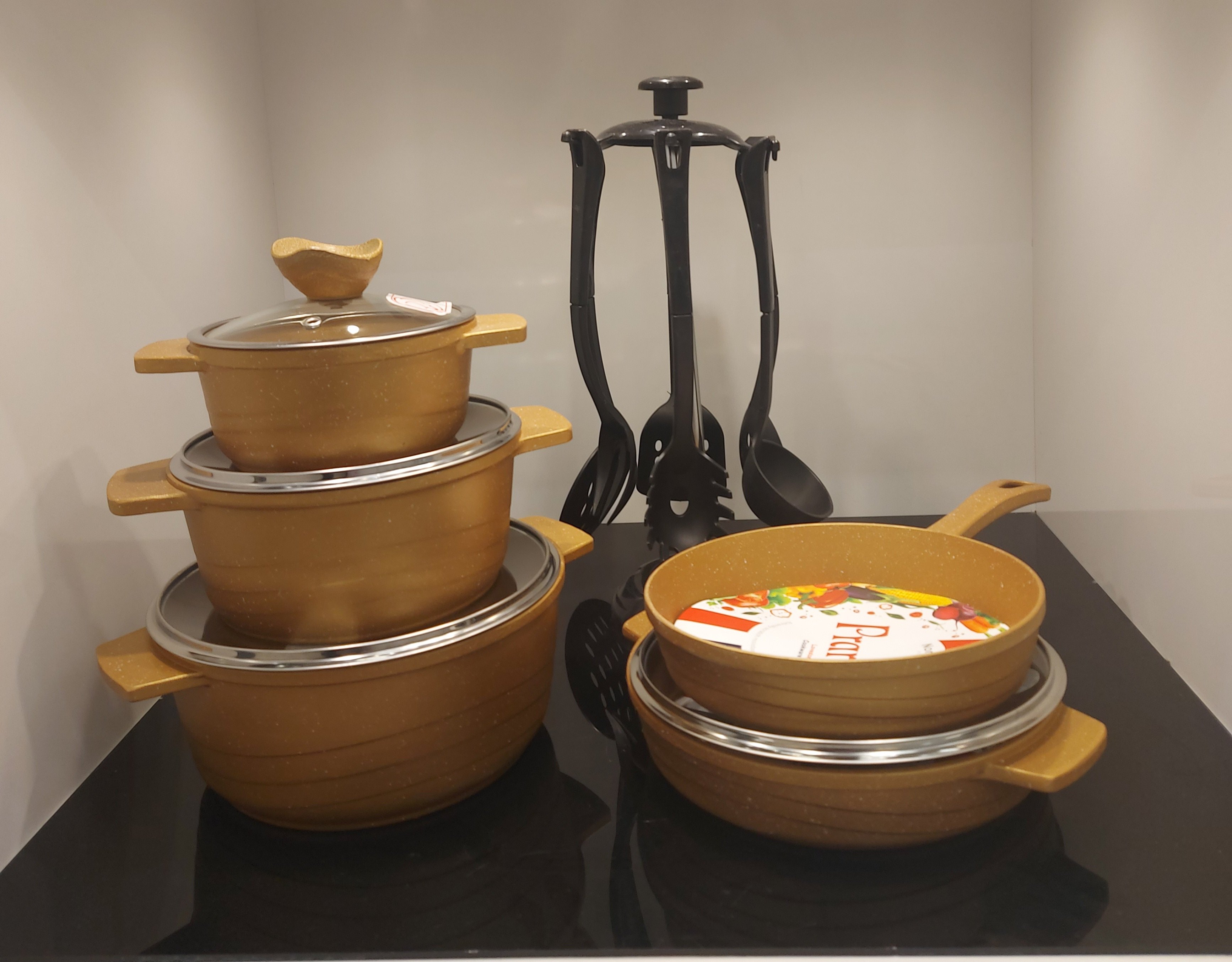 سرویس قابلمه ۱۶ پارچه پرارین.در دو رنگ طلایی و مشکی
