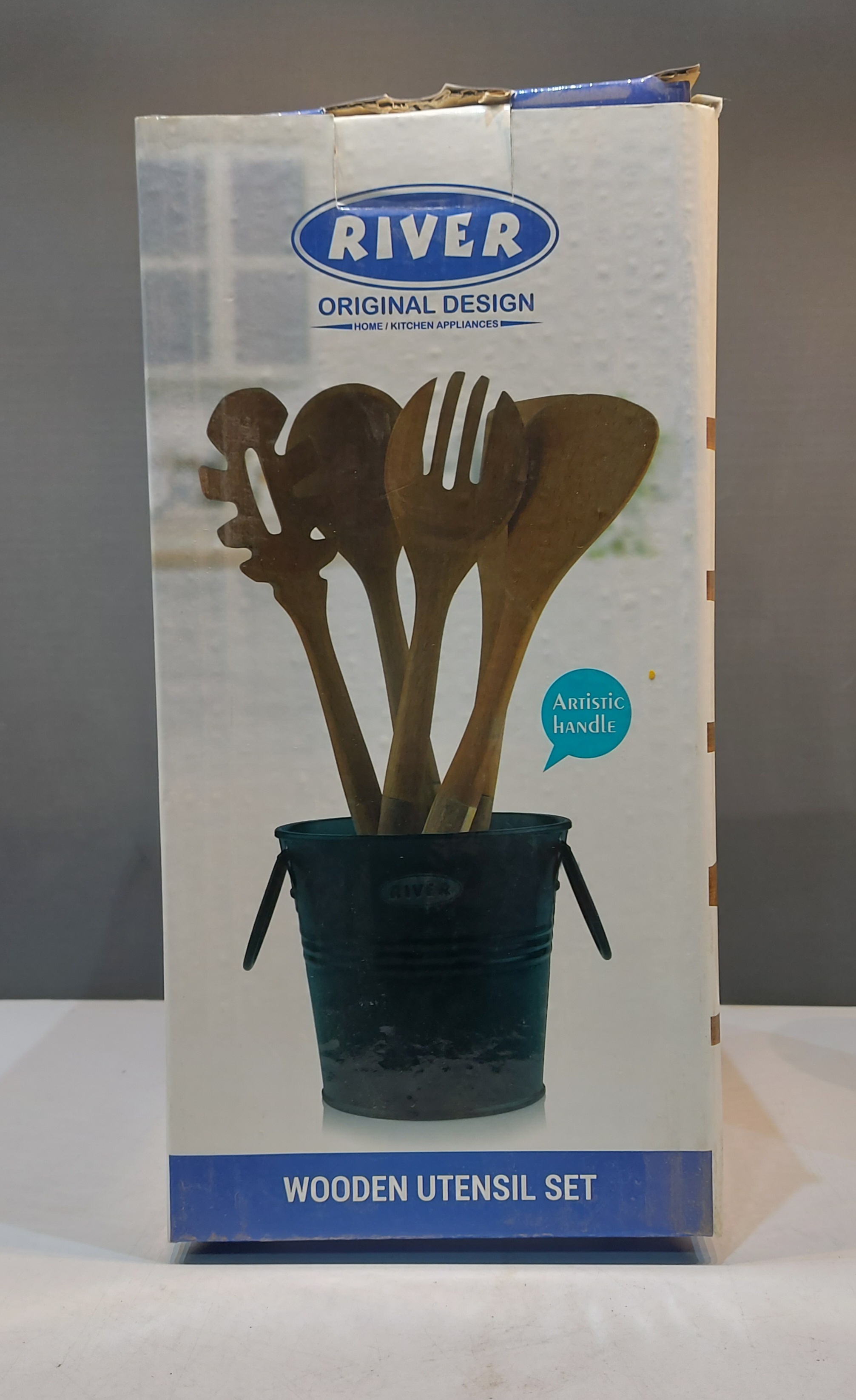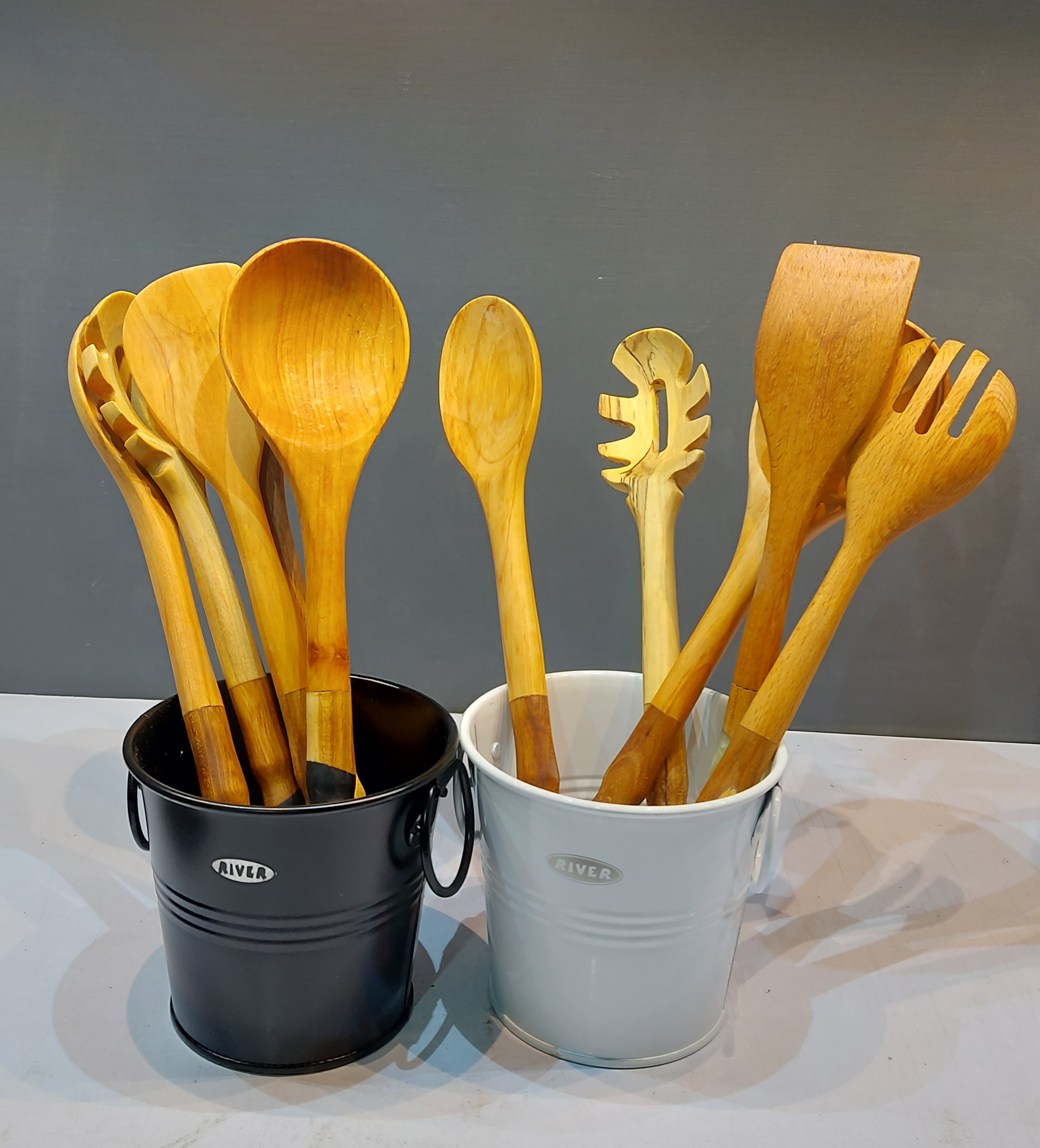 ست کفگیر و ملاقه چوبی ریور با سطل فلزی