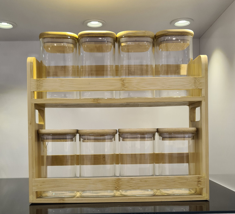 پاسماوری پیرکس شفاف با اسوند چوبی و درب بامبو که دارای واشر میباشد.بسیار زیبا .وارداتی