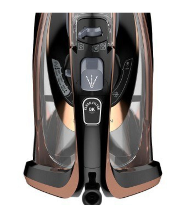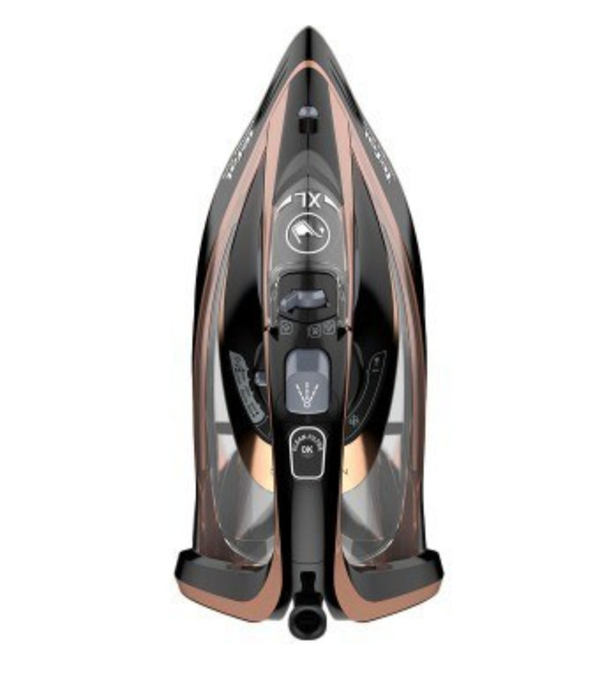 اتو بخار تفال مدل ۹۸۴۵ با رنگ زیباررزگلد ساخت کشور فرانسه با توان مصرفی۳۱۰۰ وات ظرفیت مخزن ۳۵۰ با قابلیت سیستم بخار دهی عمودی و سیستم ضد چکه دارای مخزن رسوب و سیستم رسوب زدایی عالی میباشد